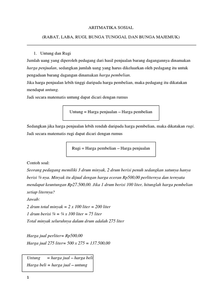 Contoh Soal Aritmatika Sosial Lama Menabung. Bagaimana contoh soal dan pembahasan soal UN untuk materi aritmatika sosial. Soal di bawah ini merupakan soal kombinasi yang melibatkan berbagai pemahaman yaitu brutto, tara, netto, harga pembelian, harga penjualan dan untung rugi.